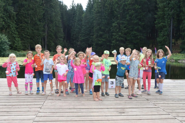Dětský start je u cesty na hlavní start (1,1 km / 80 m), dětský cíl pak v kempu.